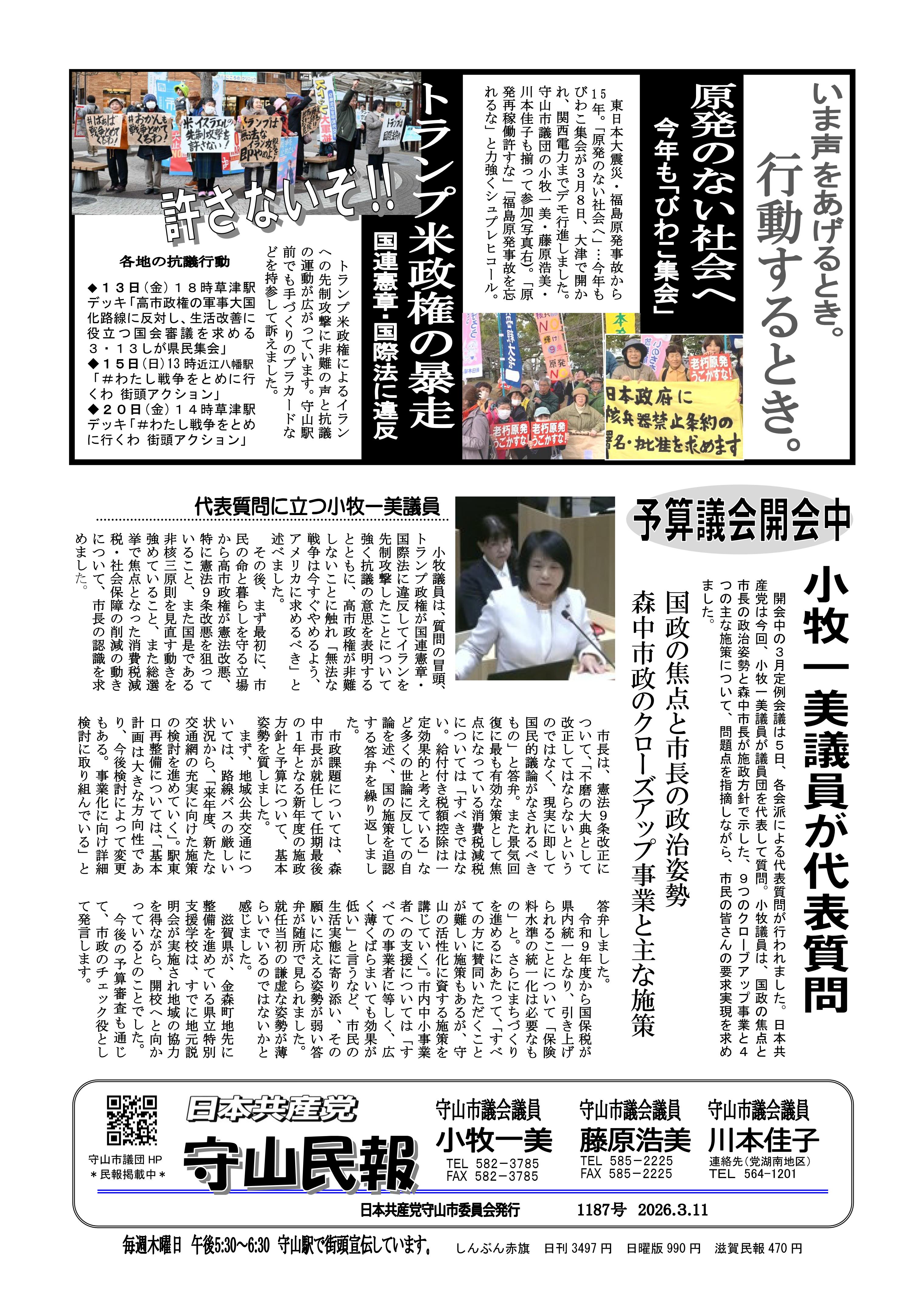 民報1187  原発集会 戦争反対宣伝 代表質問_01